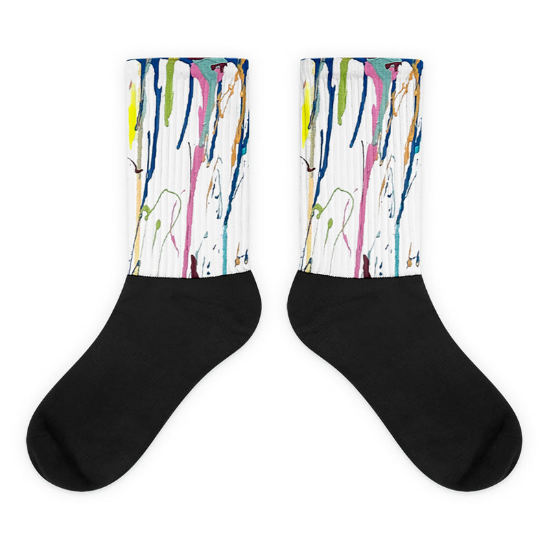 These socks are extra comfortable thanks to their cushioned bottom. The foot is black with artwork printed along the leg with crisp, bold colors that won't fade.