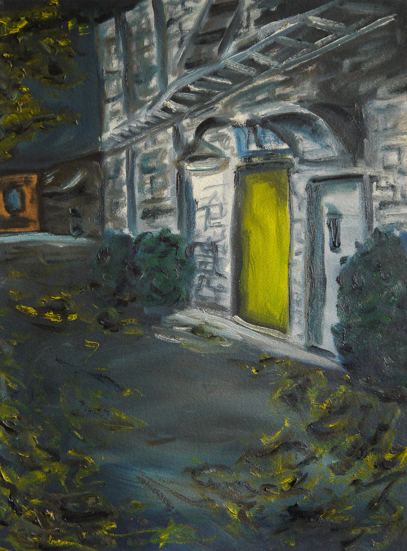 Oil on arches paper mounted to panel