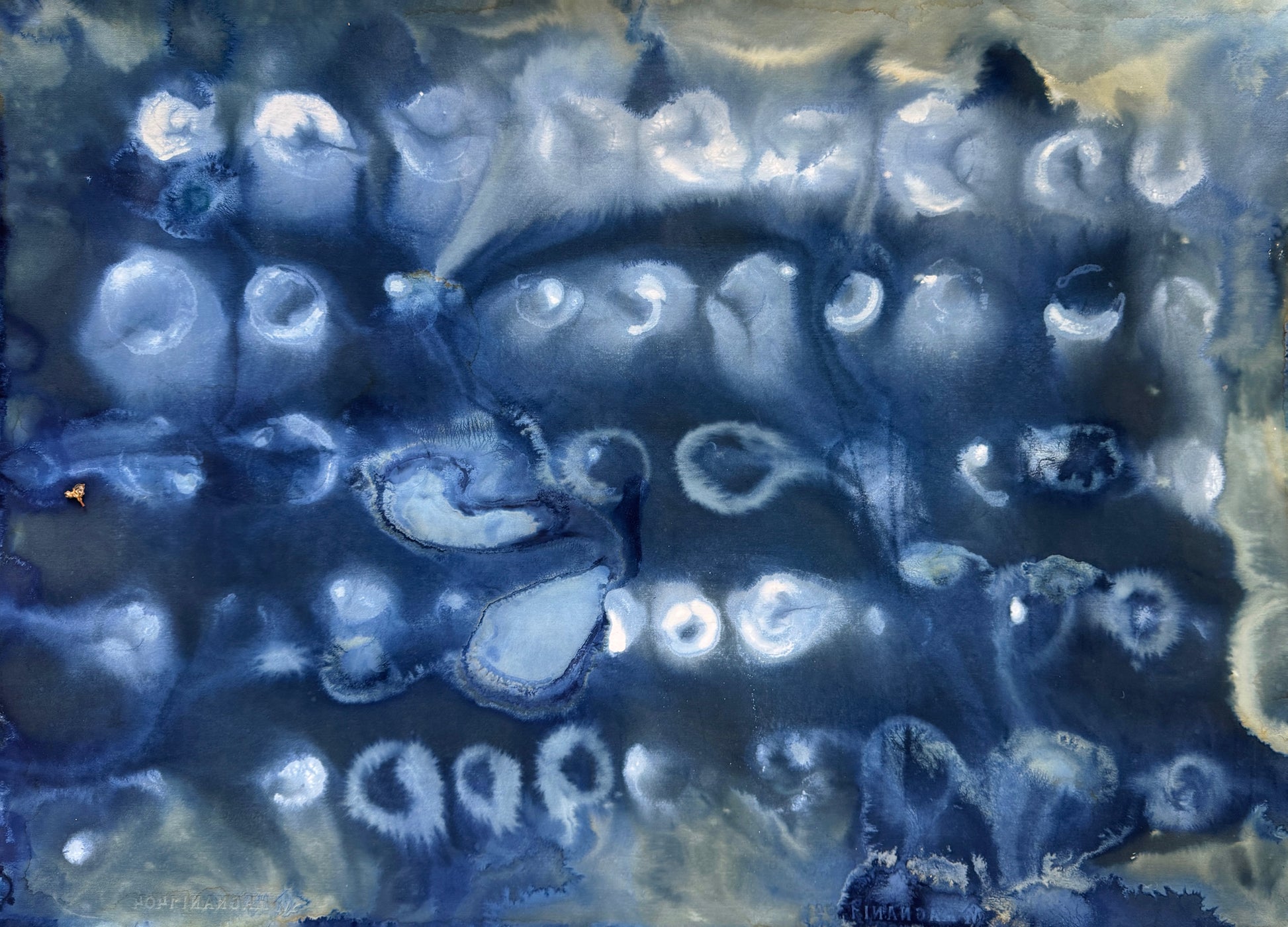 Cyanotype and watercolor on paper