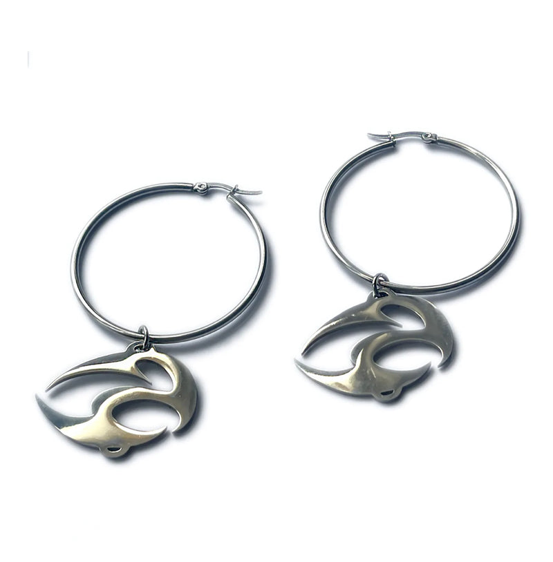 Industrial hinged hoop. Curb chain link hangs alien abundance charm.