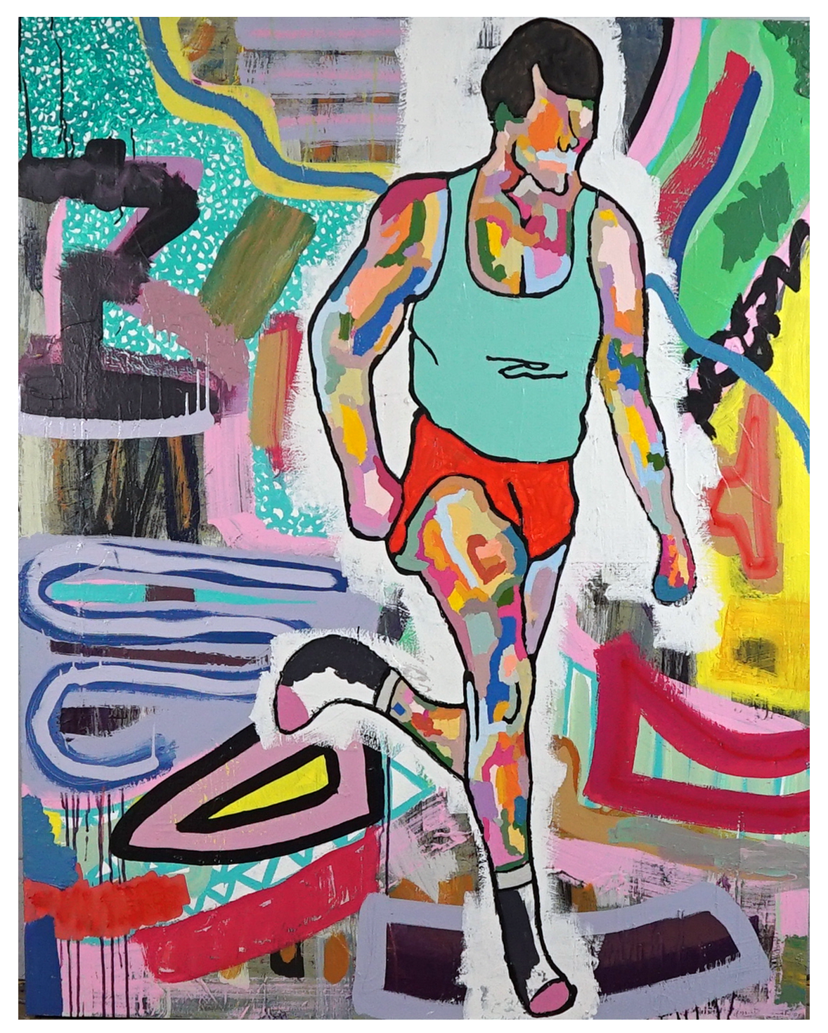Acrylic, latex, enamel on canvas