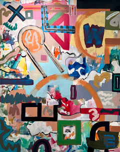 Acrylic, Latex, spray paint on canvas