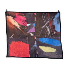 Julian J. Jones quilts made from images taken from the artist’s gestural, abstract drawings are inspired by traditional African American quilting. Combining custom textiles with solid fabrics, Jones’ works embraces and incorporates an aggressive mingling of colors, shapes, and forms as a result of pure artistic intuition. His works bridge drawing, sculpture, and textile to memorialize black culture. He communicates through the historical language of African American quilting by implementing abstract forms and vibrant colors in his works to bypass the viewer’s critical faculties and open a conversation around his Black experience.