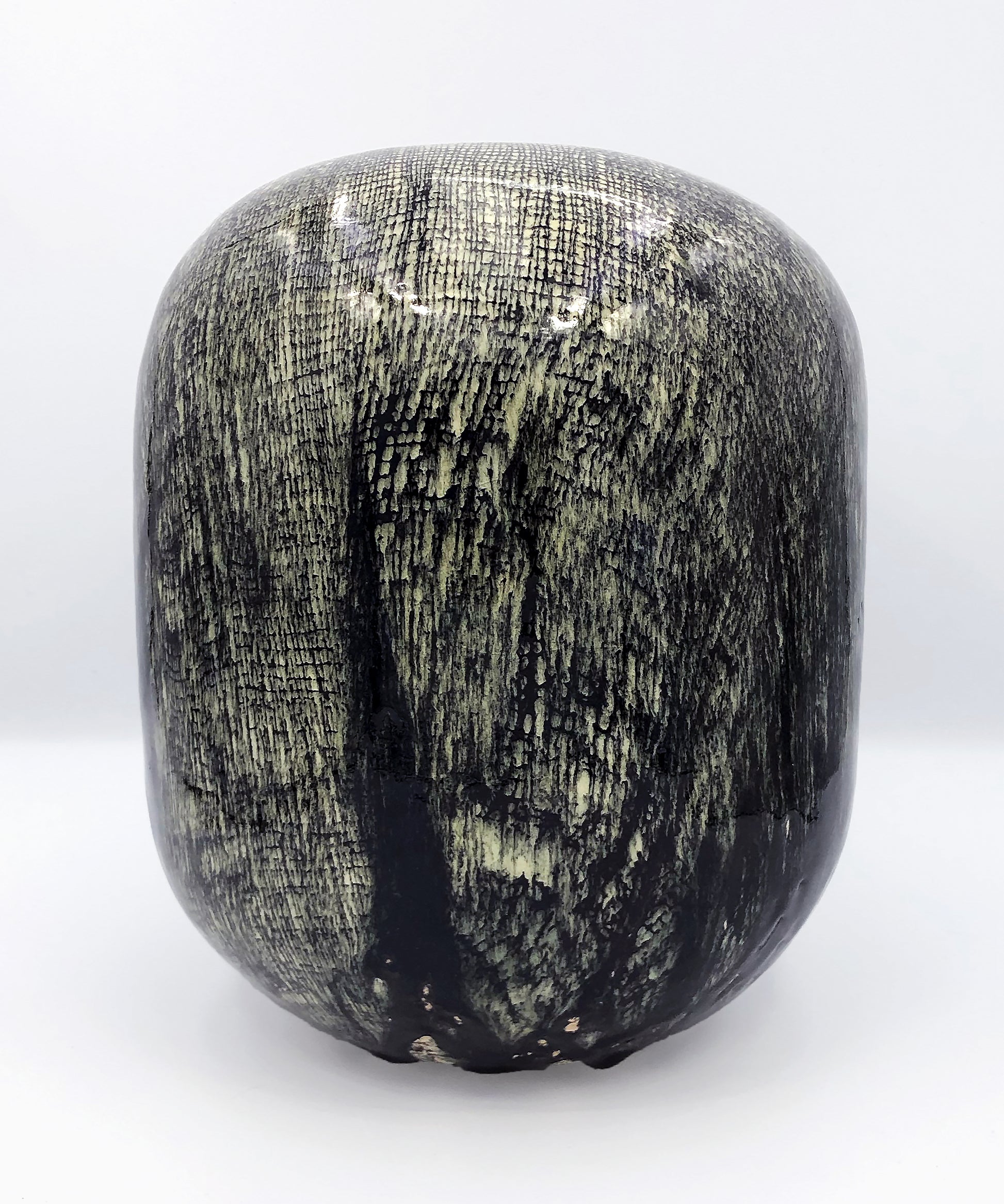 Ceramic, cheesecloth, underglaze, and glaze, 7 x 7 x 9 inches, 2020.